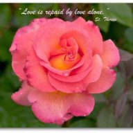 Back in those days my prayers were frequently to St. Therese of Lisieux. She is a powerful saint, in fact she’s a ‘Doctor of the Church’. Her symbol is a rose. So often when she intercedes for people, they receive a rose indicating that their prayer has been heard and answered by the Lord. Well I was praying to her back then and there were two incidences (Another powerful one comes six months later.) that seemed to be answers to my heartfelt prayers for Catie.